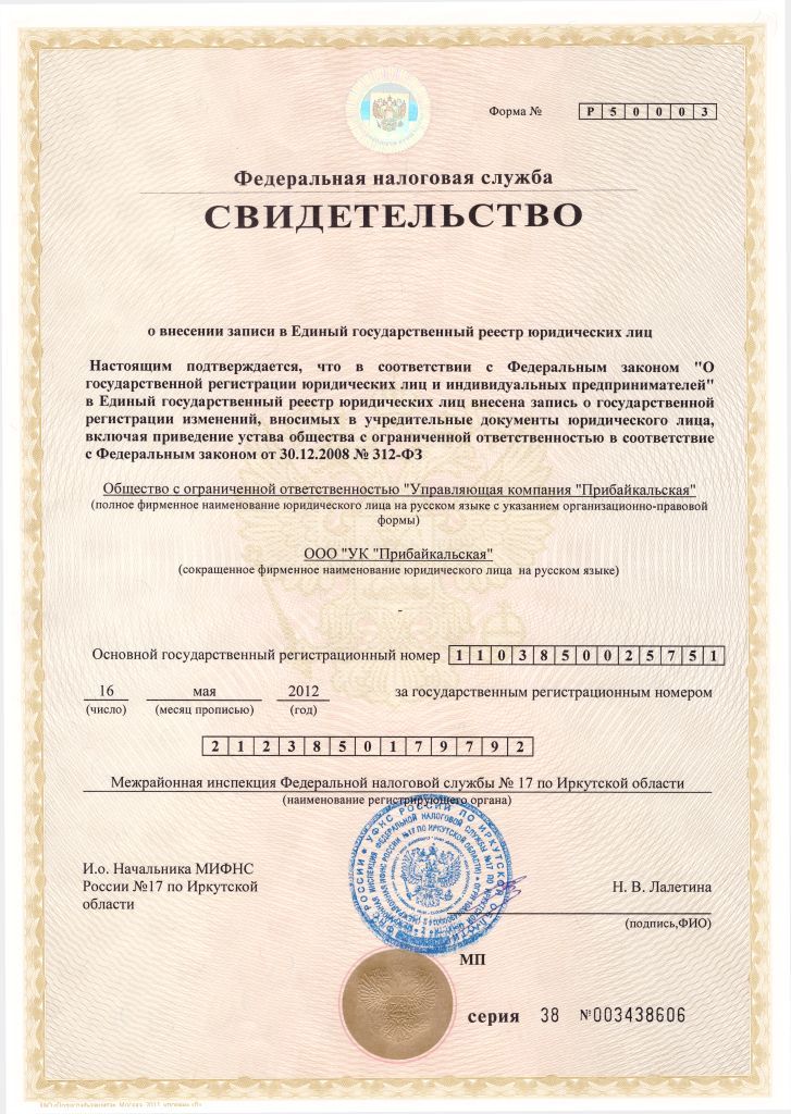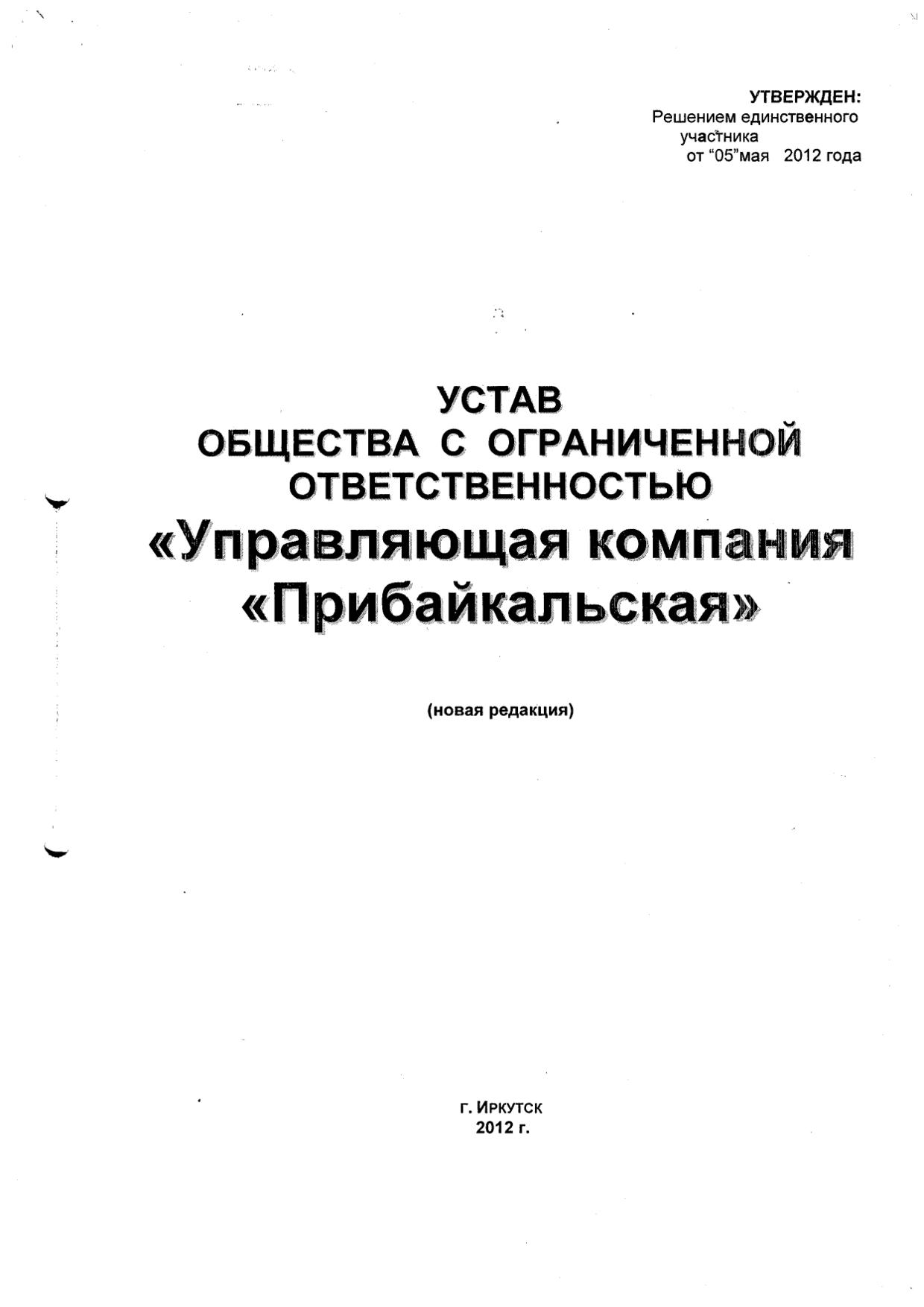 «УПРАВЛЯЮЩАЯ КОМПАНИЯ «ПРИБАЙКАЛЬСКАЯ»
